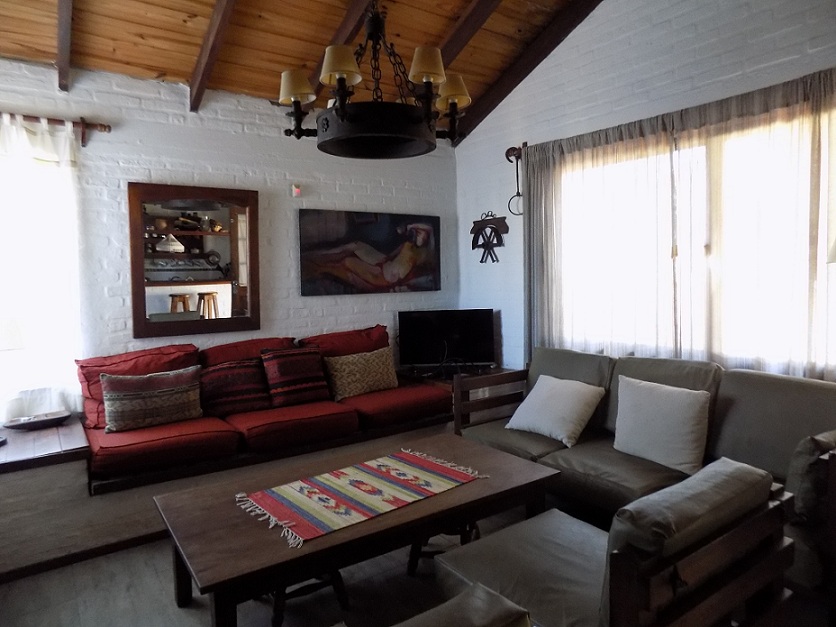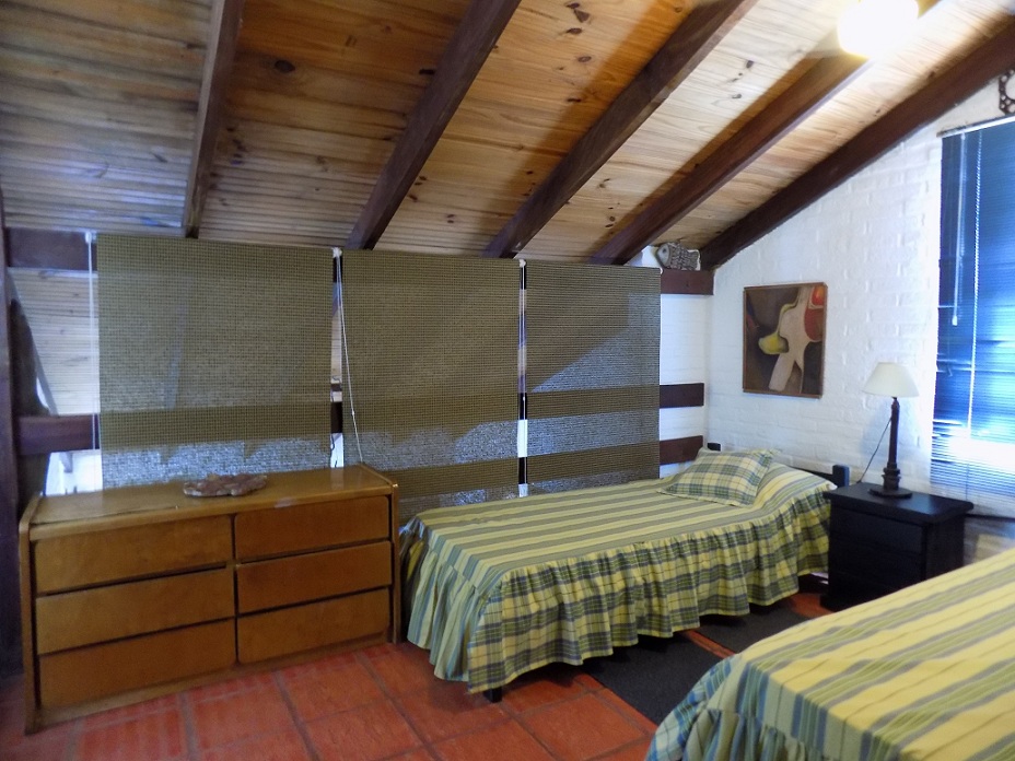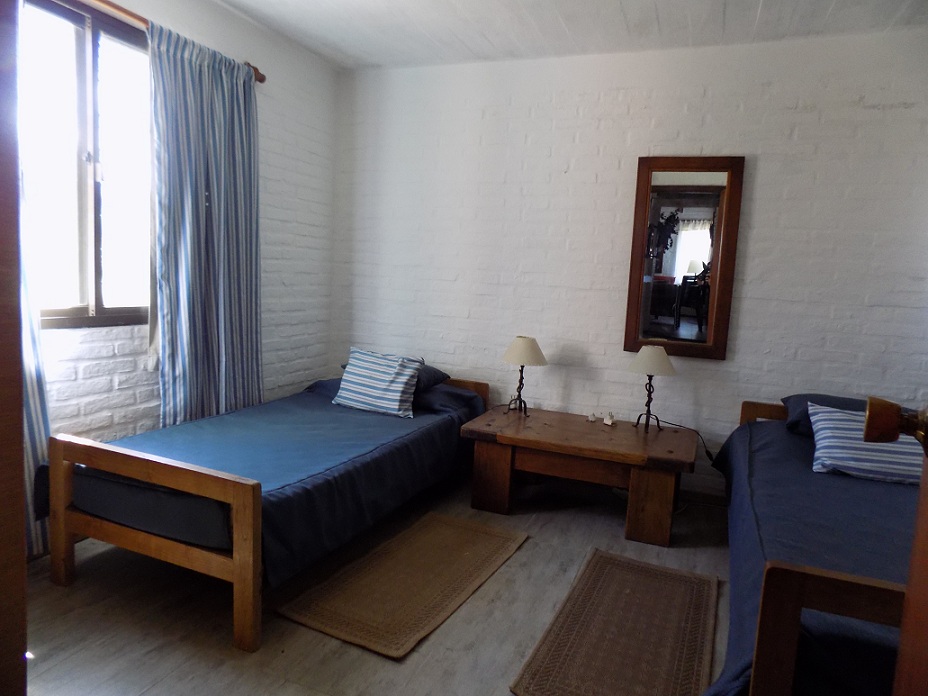 En planta baja cuenta con living y cocina integrados, dormitorio single con dos camas, baño completo, lavarropas. En planta alta cuenta con dormitorio matrimonial con ventanal y terraza, entrepiso abierto que balconea al living, acondicionado como un segundo dormitorio single con 2 camas más y otro baño completo. Dependencia exterior acondicionada como otro dormitorio. Buen parrillero.