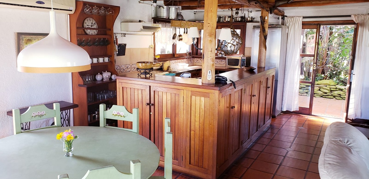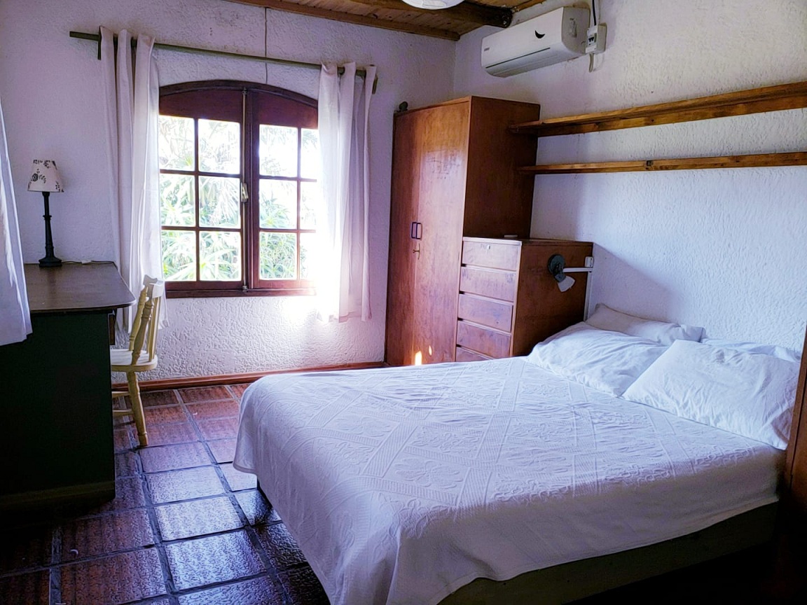 Cuenta con tres dormitorios matrimoniales, dos dormitorios, uno con dos camas y otro con tres camas. Tres baños completos. Amplio y luminoso living comedor con cocina integrados. Parrilero techado. Hermoso jardín interior con galería. Garage. Muy bien equipada con heladra con freezer, lavarropa, lavavajillas, TV Cable. Electrodomésticos varios. Aire acondicionado. Alarma.