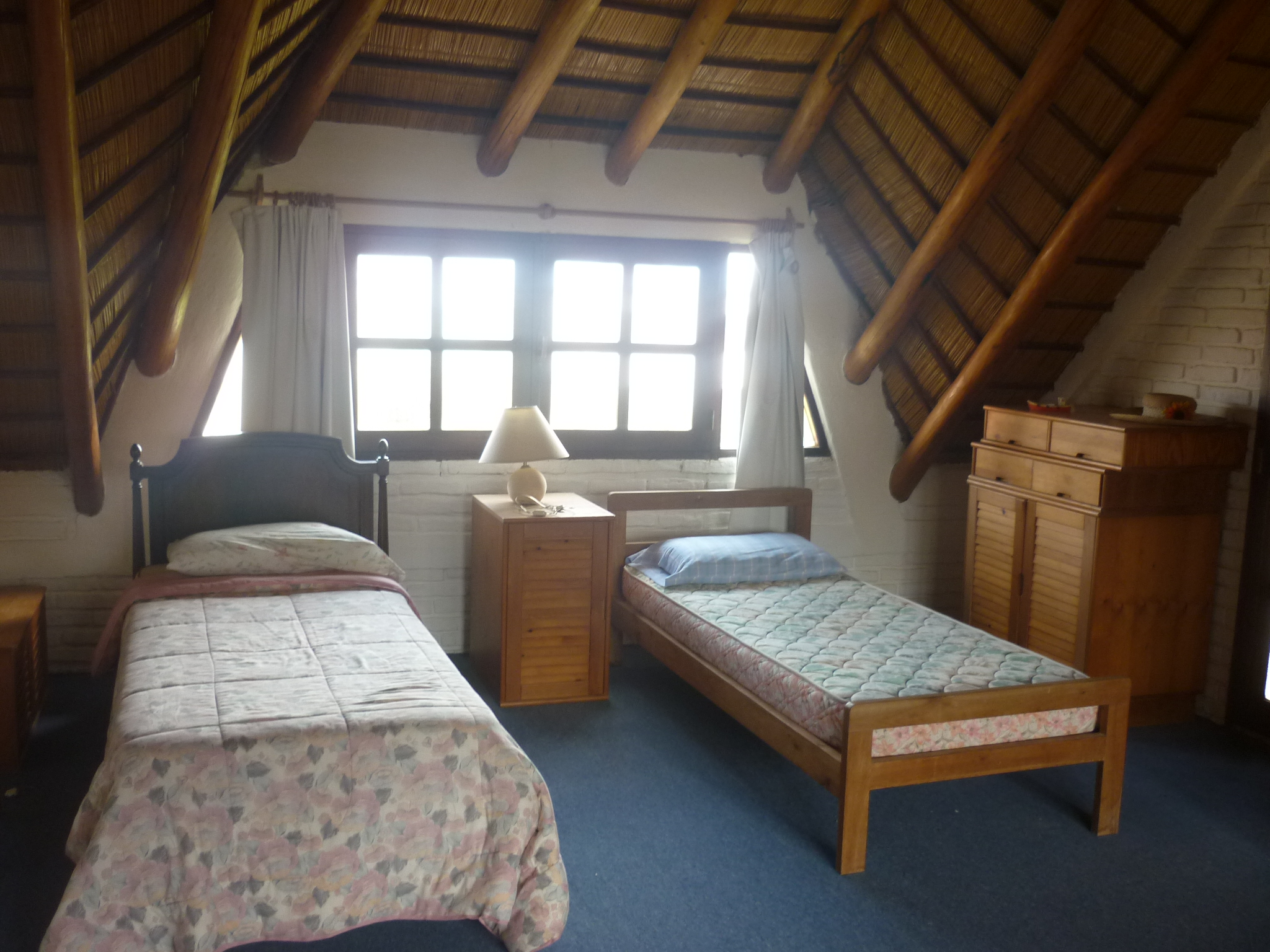 En planta alta dormitorio amplio y muy luminoso con acceso a pequeño balcon. 4 camas y capacidad para 2 colchones inflables adicionales.