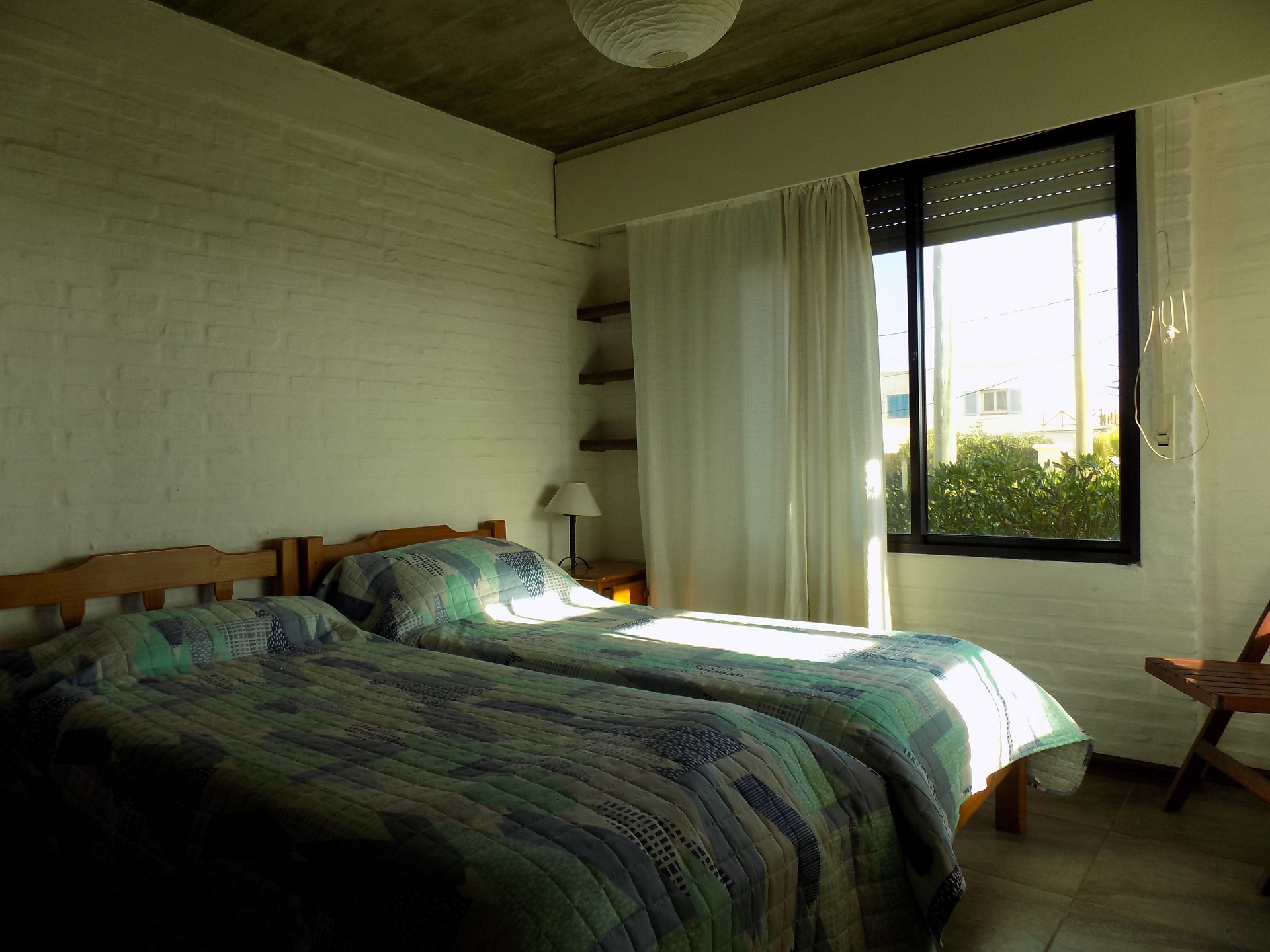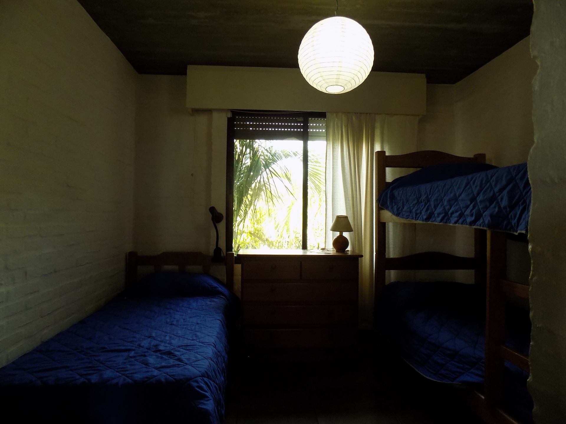 La casa cuenta en planta baja con dos dormitorios singles, uno con 2 camas y otro con 3. Cómodo living comedor con cocina integrados, amplios ventanales. Baño completo.