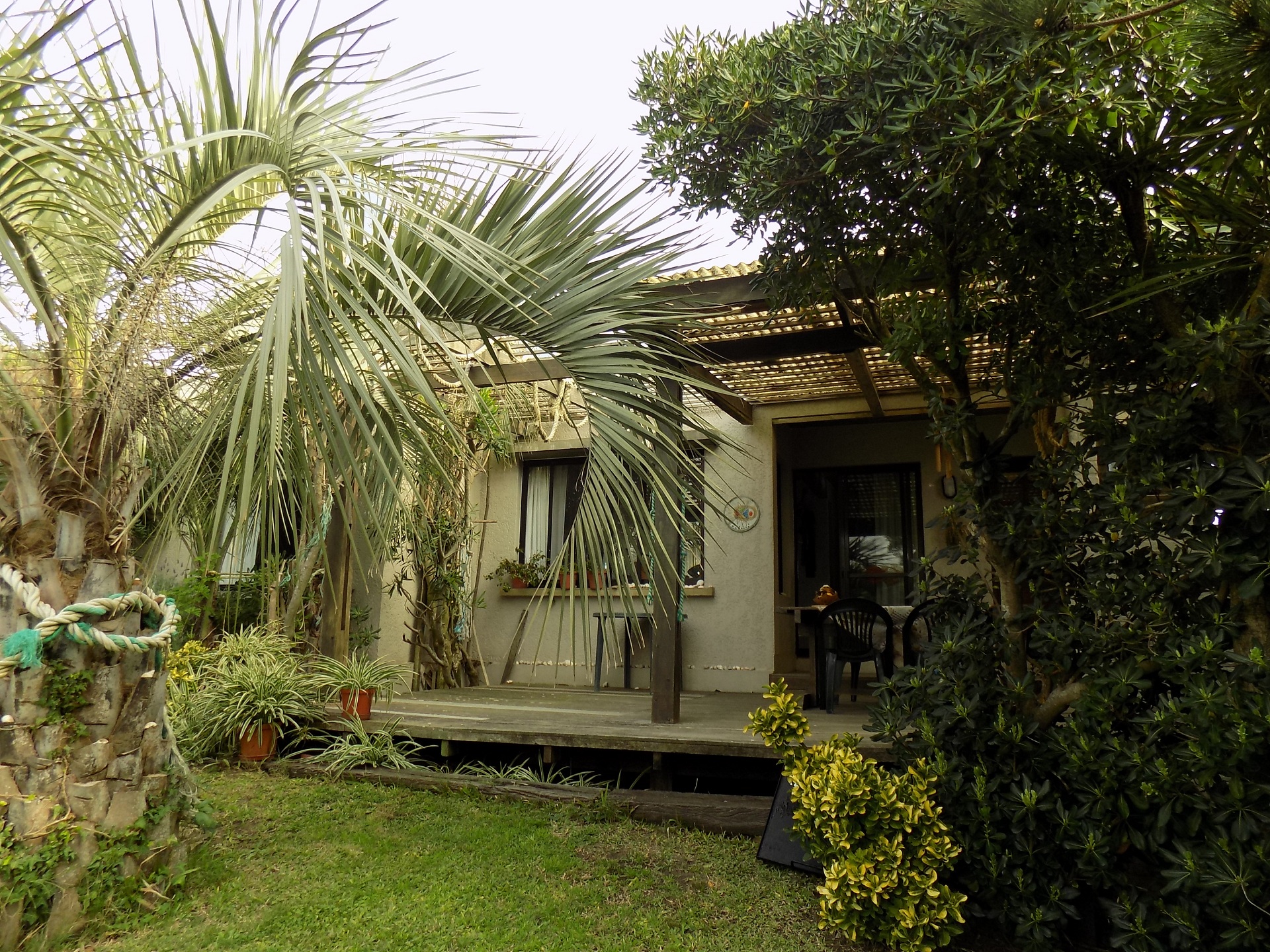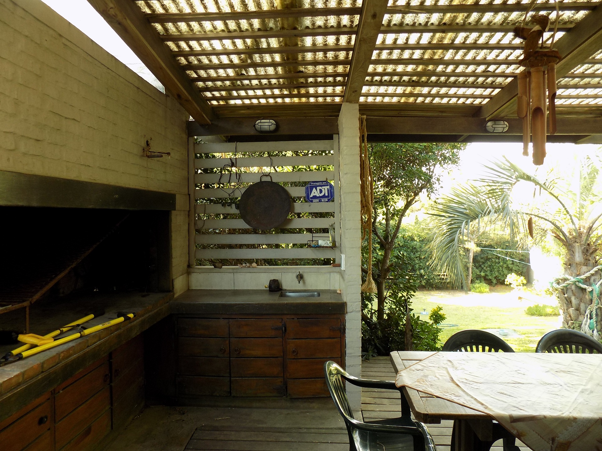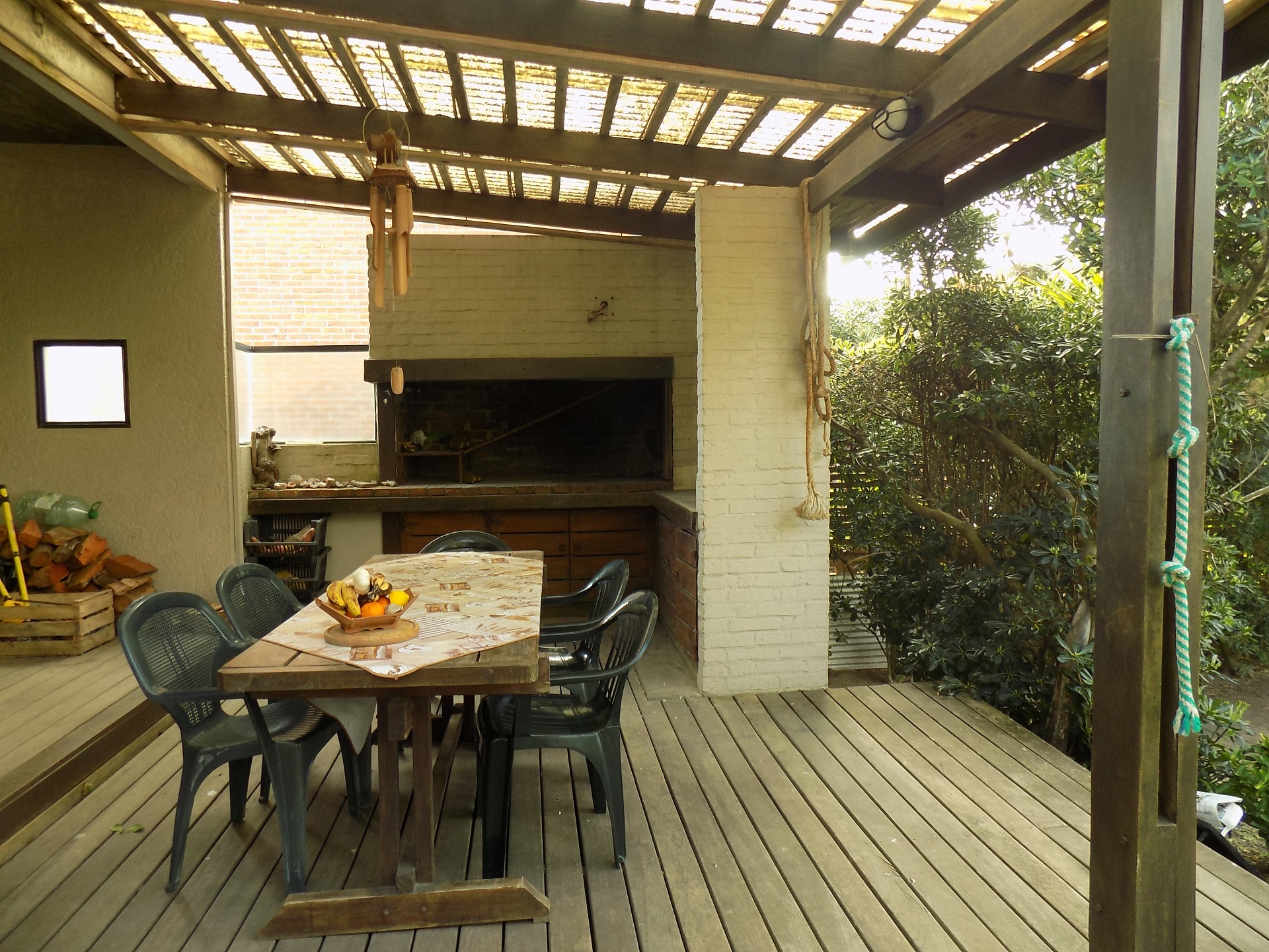 Al fondo, excelente parrillero techado con conexión a la cocina y deck a un encantador jardín parquizado y cercado.