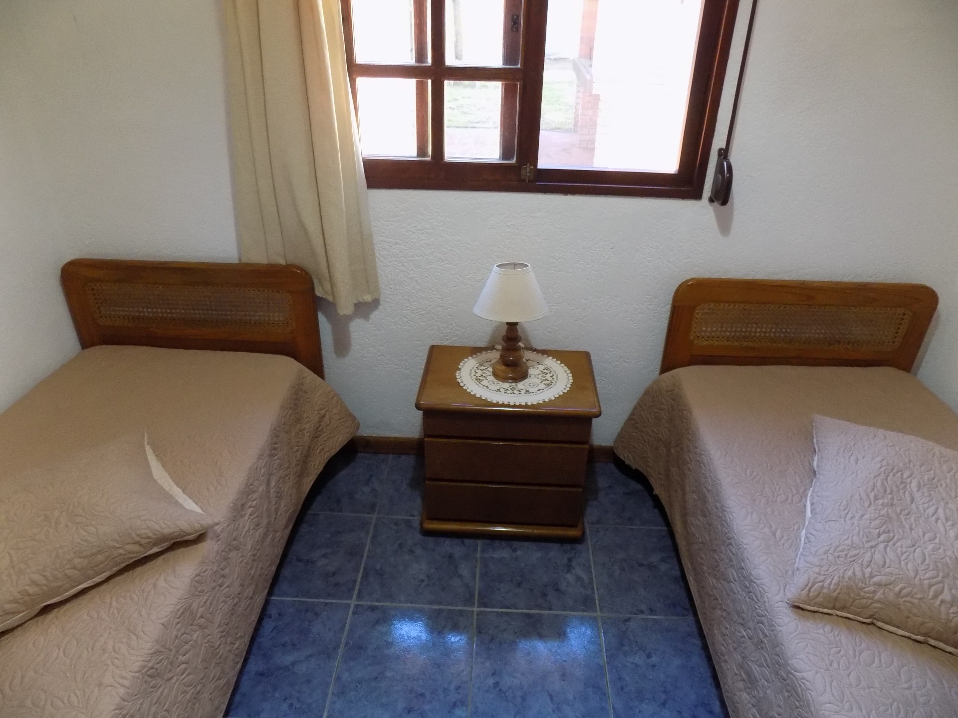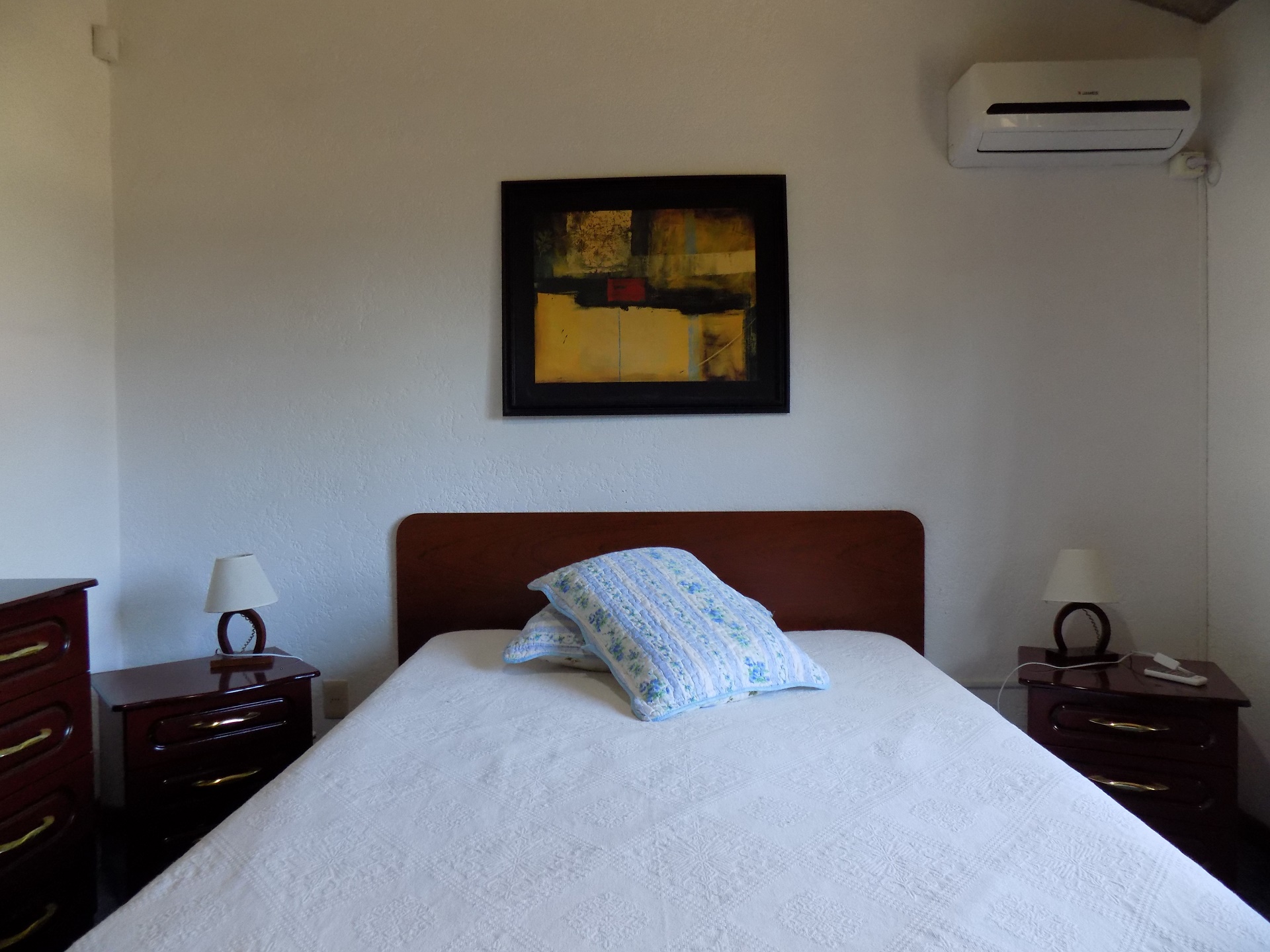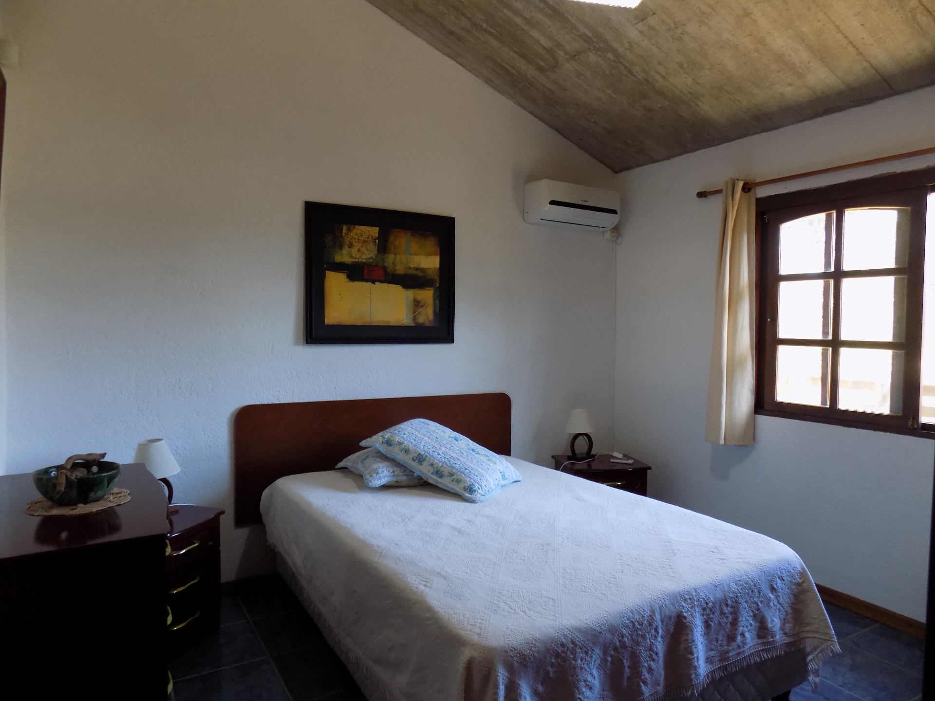 Dormitorio matrimonial con AC y dormitorio single con dos camas. Baño completo.