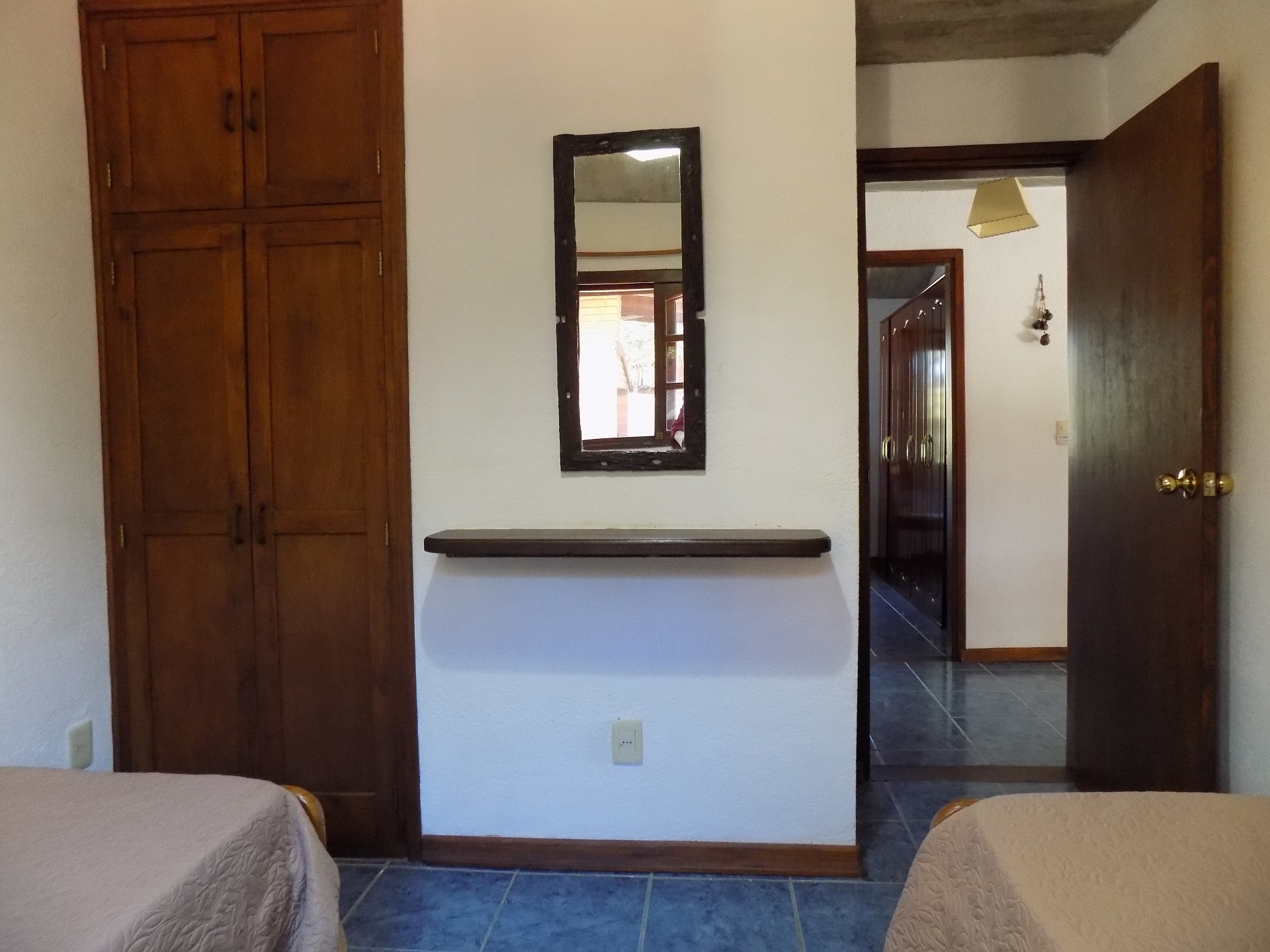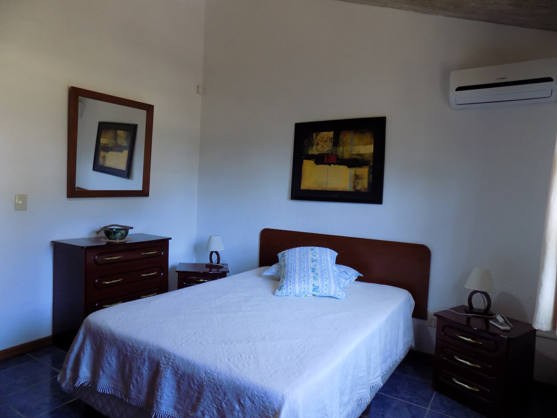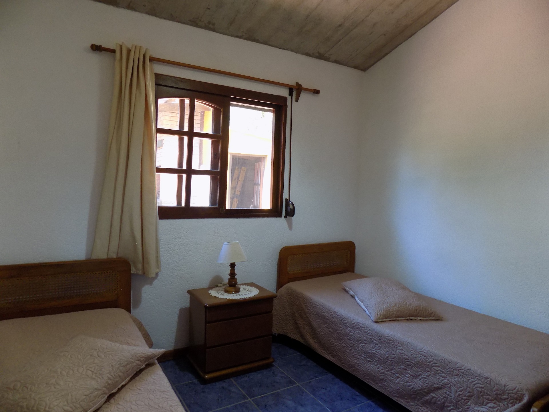 Dormitorio matrimonial con AC y dormitorio single con dos camas. Baño completo.