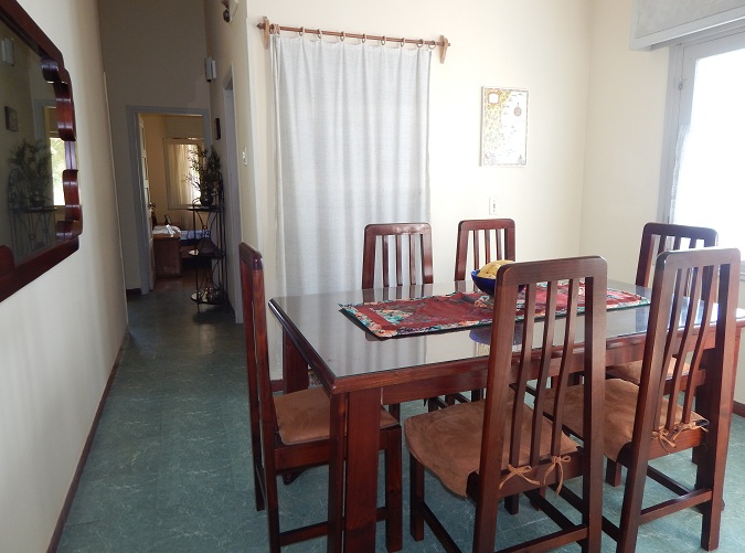 Casa con dormitorio matrimonial y dos dormitorios, baño completo y baño de servicio, cocina comedor integrados. Cómodo y luminoso living con estufa a leña. Parrillero techado. Patio cercado. Entrada para auto. Ubicada en pleno centro sobre Avenida Solari a 500 metros de playa Bahía.