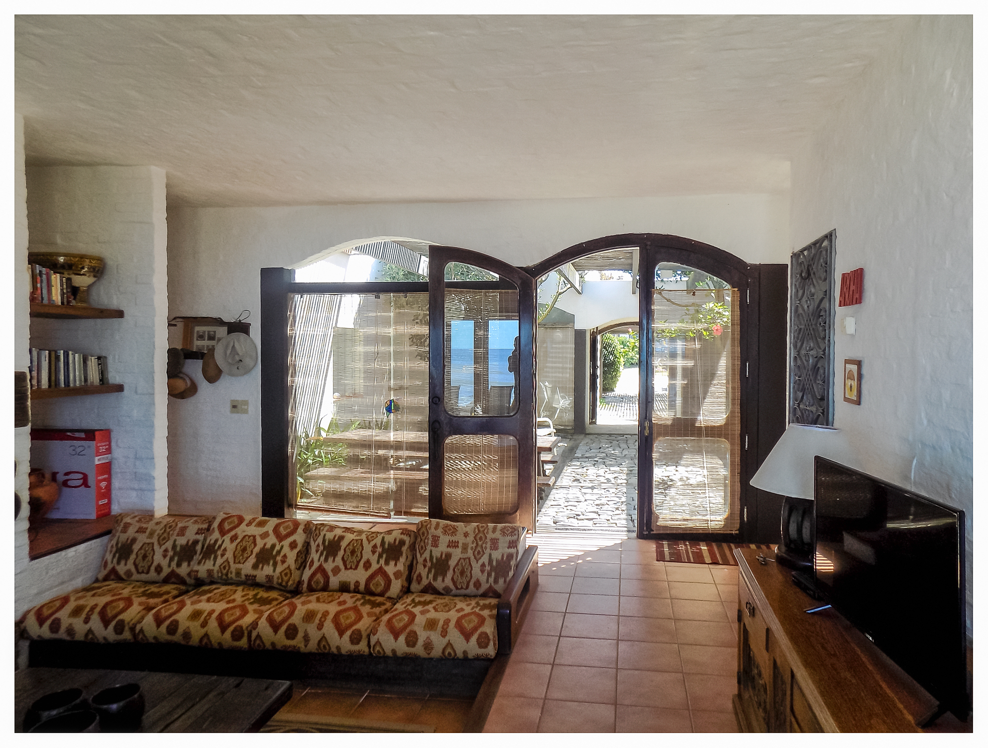 Living integrado con patio interior en el cual se encuentra el parrillero, salida a terraza directa al mar, amplia y cómoda cocina comedor con desayunador.