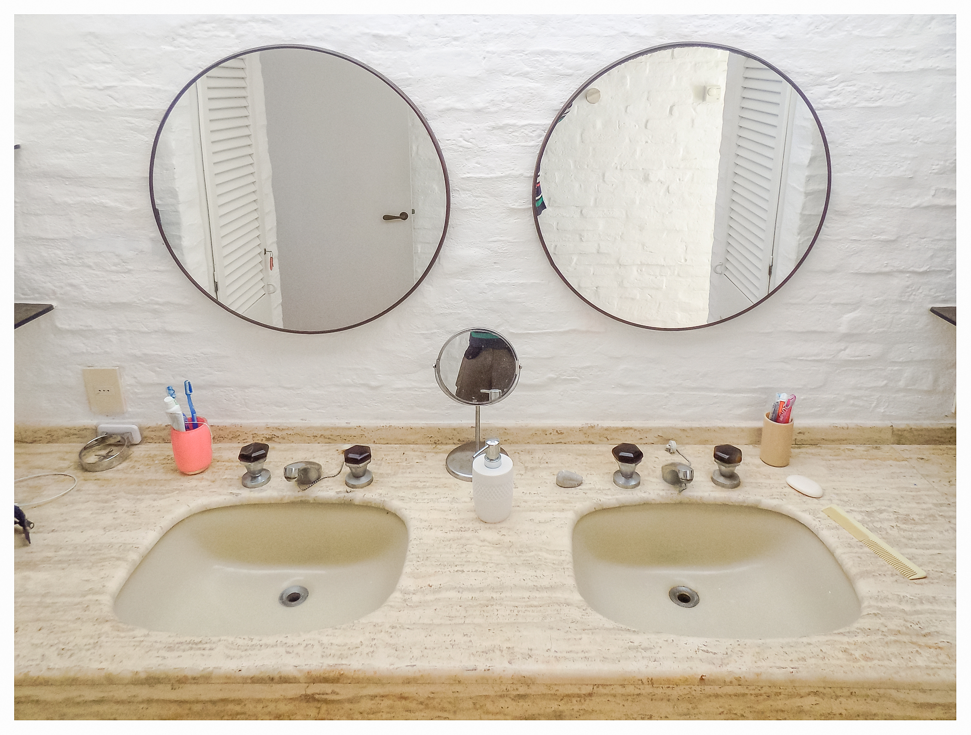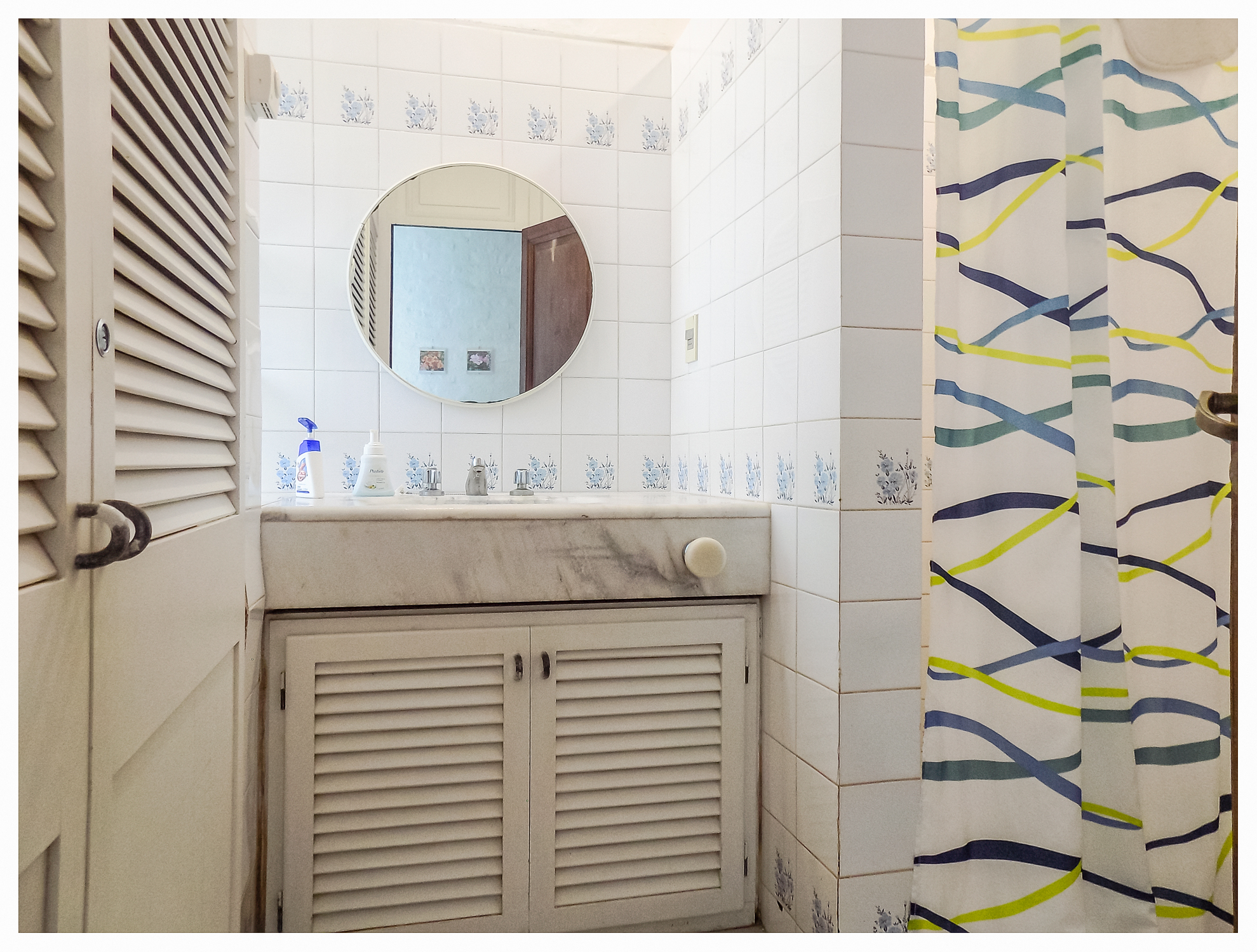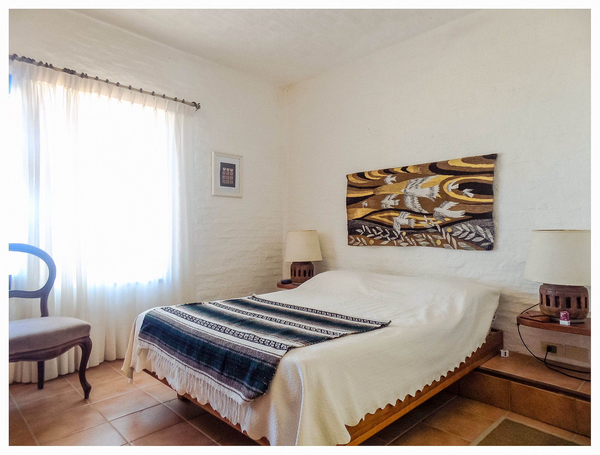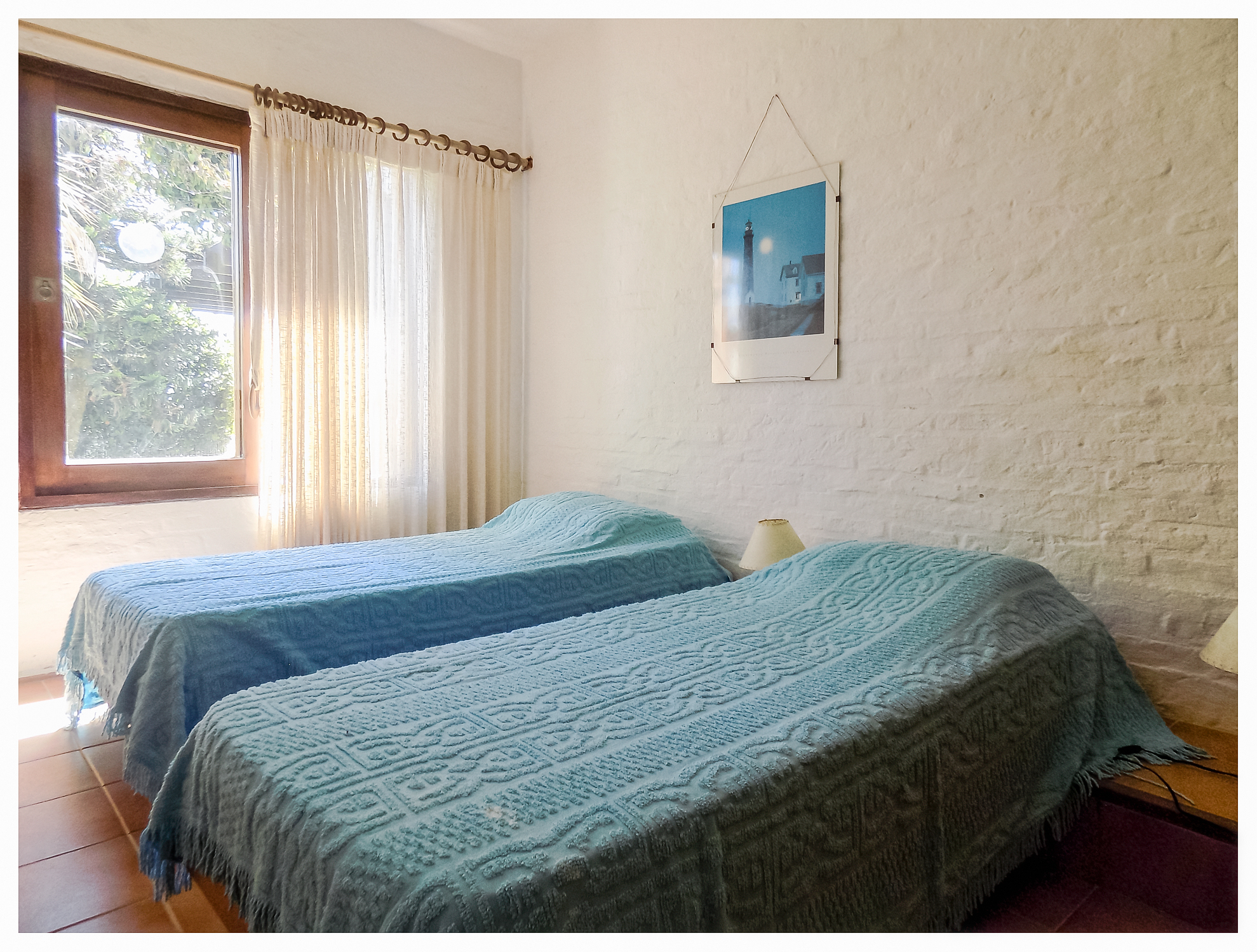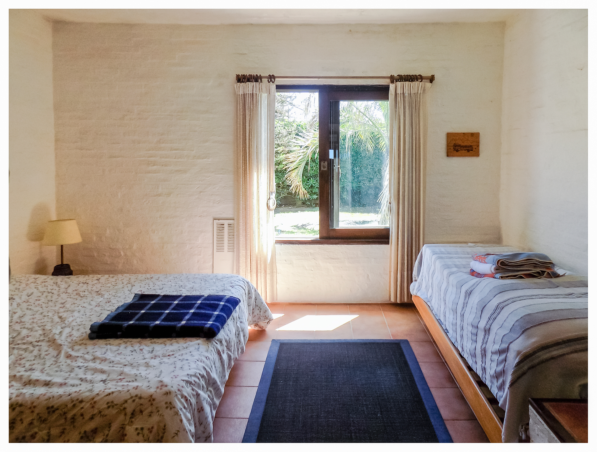 Dormitorio matrimonial en suite con vista al mar, dos dormitorios, uno de ellos con cama matrimonial y cama de una plaza, el otro con dos camas de una plaza. Baño completo