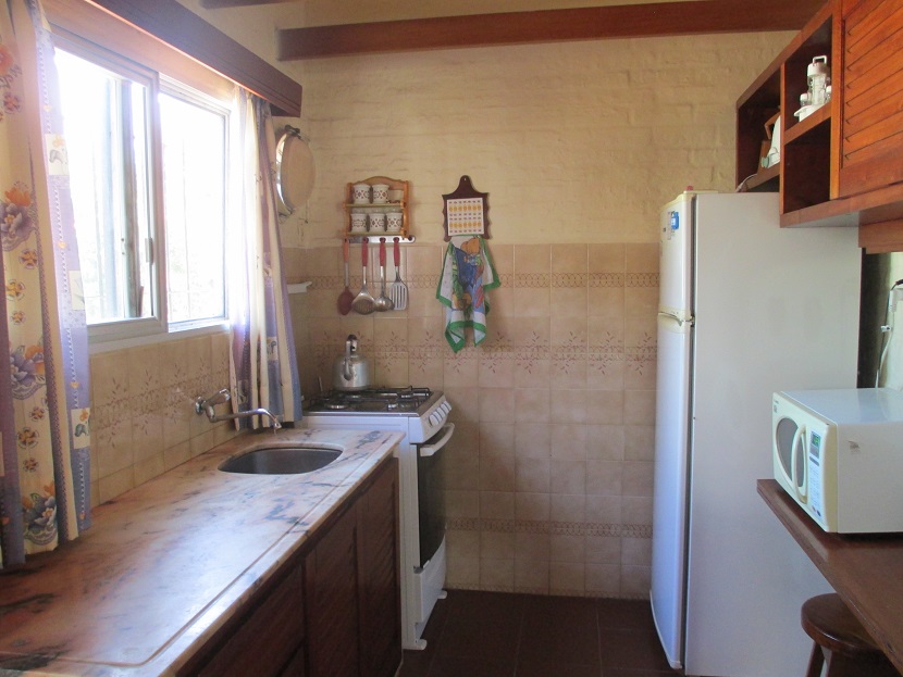 Tiene en planta baja, living comedor en un espacio cómodo y luminoso, cocina. Dormitorio matrimonial en suite, y otro dormitorio con 2 camas, baño. En la planta alta tiene un dormitorio con dos camas. Muy buen parrillero techado, dependencia exterior con baño. Entrada para el auto. Patio totalmente cercado. Bien equipada con Direct TV, heladera c/freezer, microondas, lavarropas y demás comodidades.