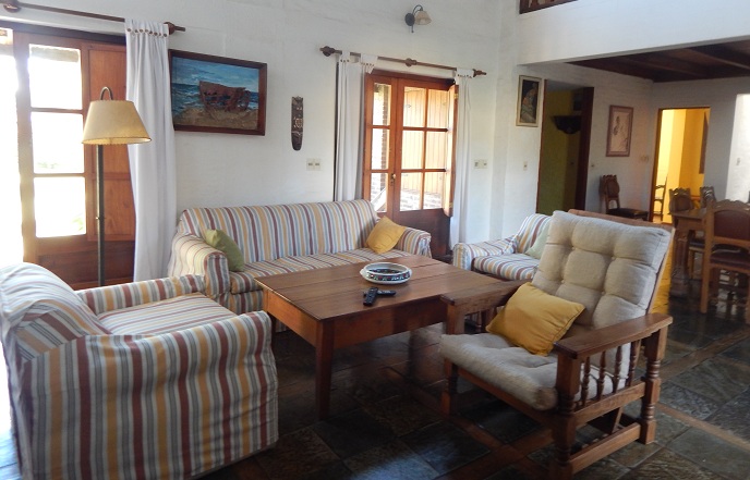En planta baja tiene amplio living comedor, cocina con comedor diario. Dormitorio de servicio con 2 camas, baño. Dormitorio matrimonial en suite, bañera y jardín interior. En planta alta tiene otro dormitorio matrimonial en suite con terraza, dos dormitorios singles uno con 2 camas y baño completo. Garage, parrillero techado, agradable jardín completamente cercado. Muy bien equipada con microondas, heladera con freezer, freezer, tv cable, lavarropas, alarma, WI FI y demás comodidades.