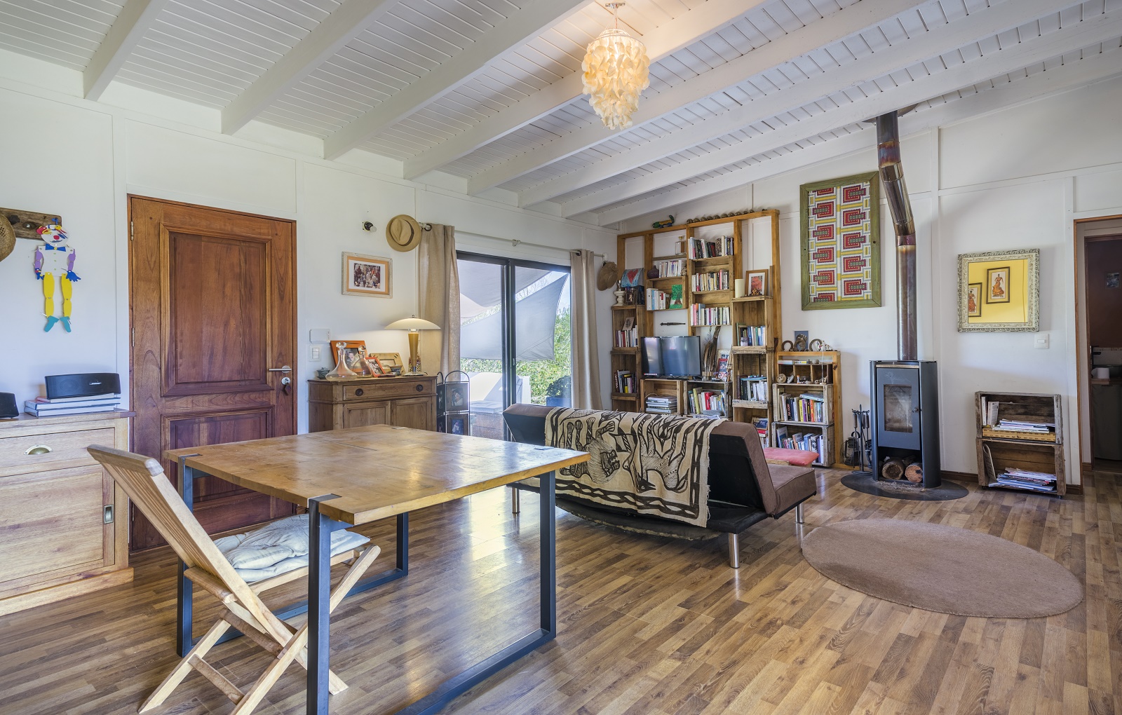 La casa principal tiene un gran salón-comedor, una cocina, una suite con vestidor y baño privado, otros 2 dormitorios, un baño, un baño social y un lavadero.