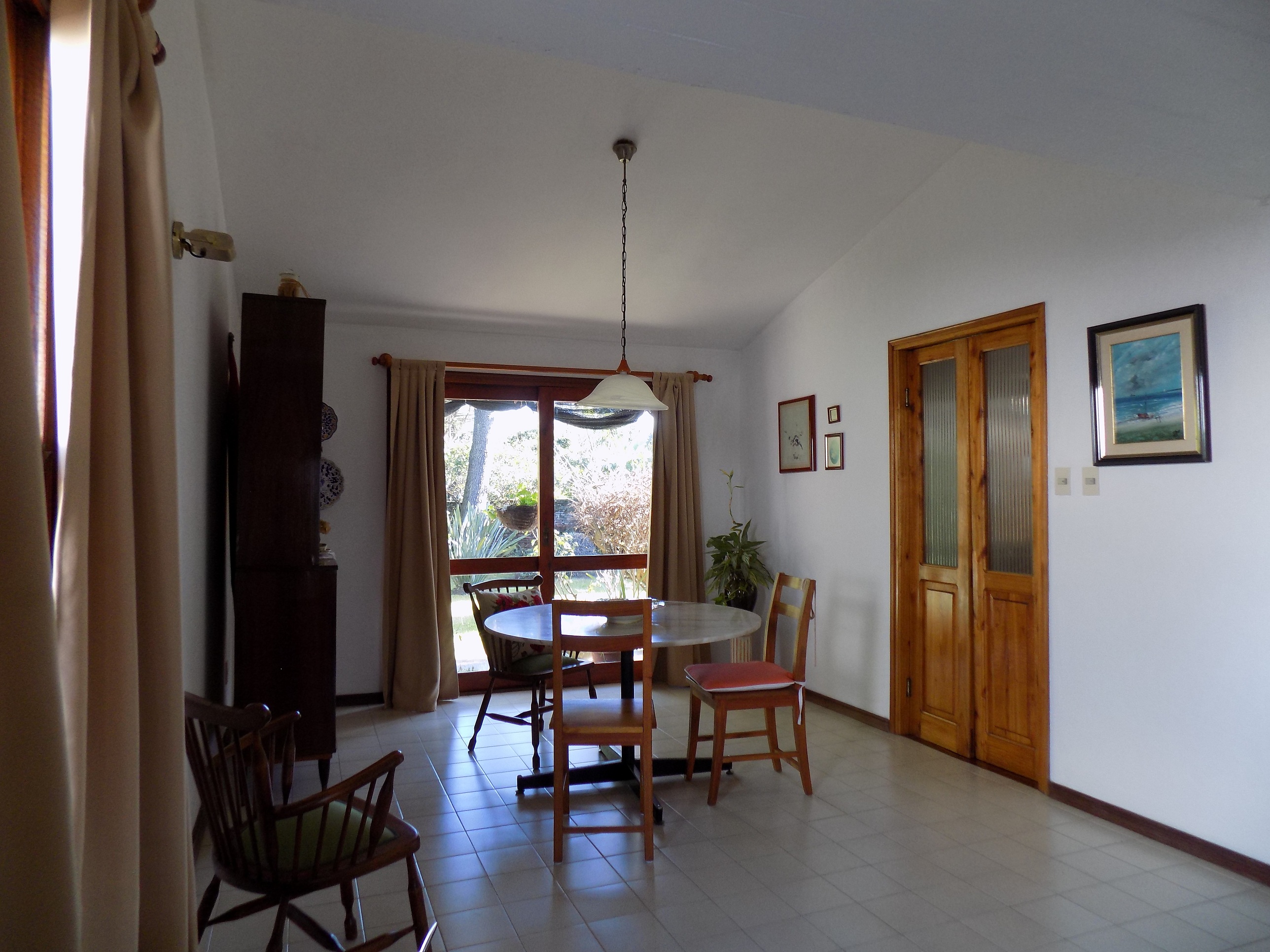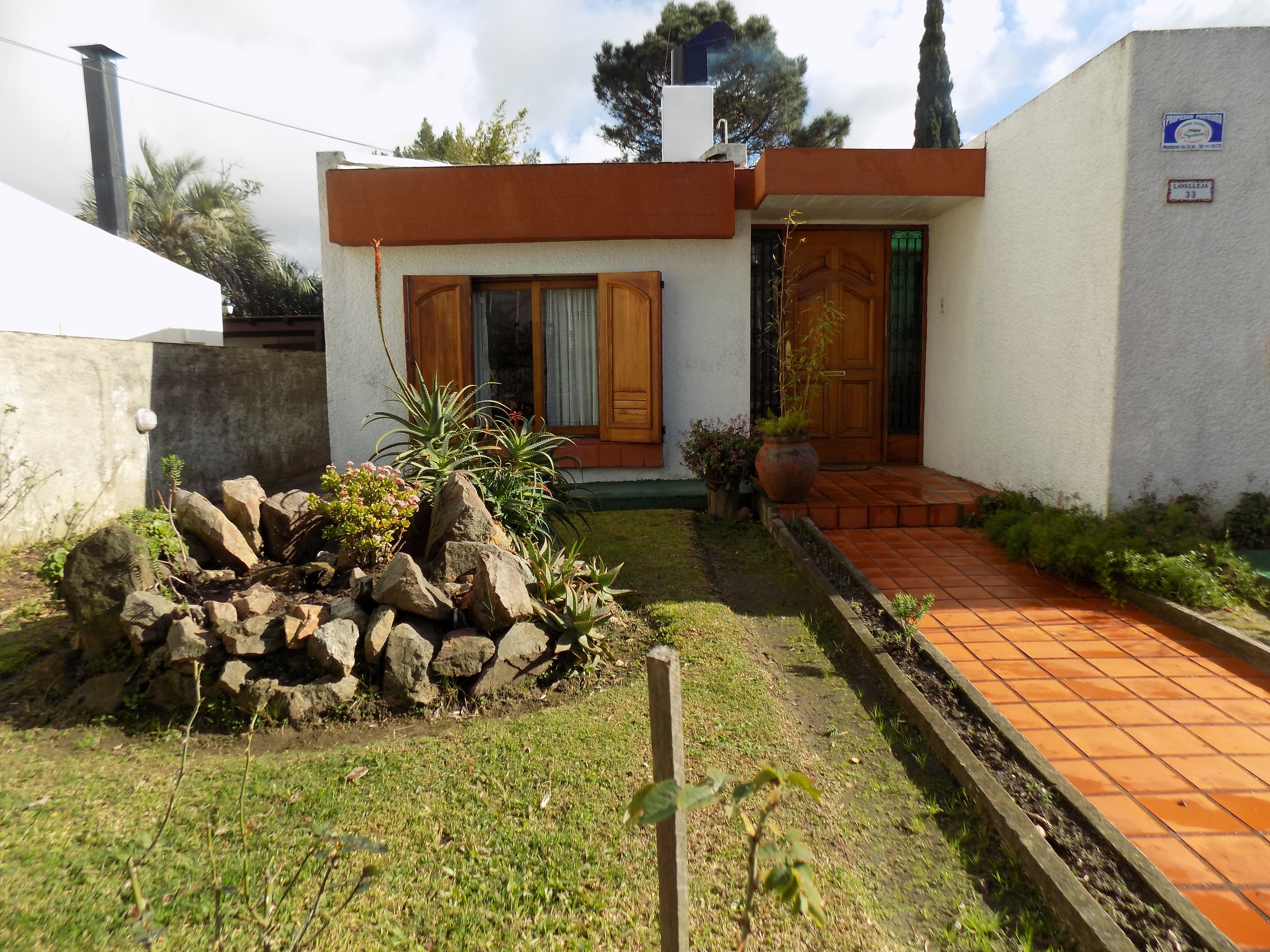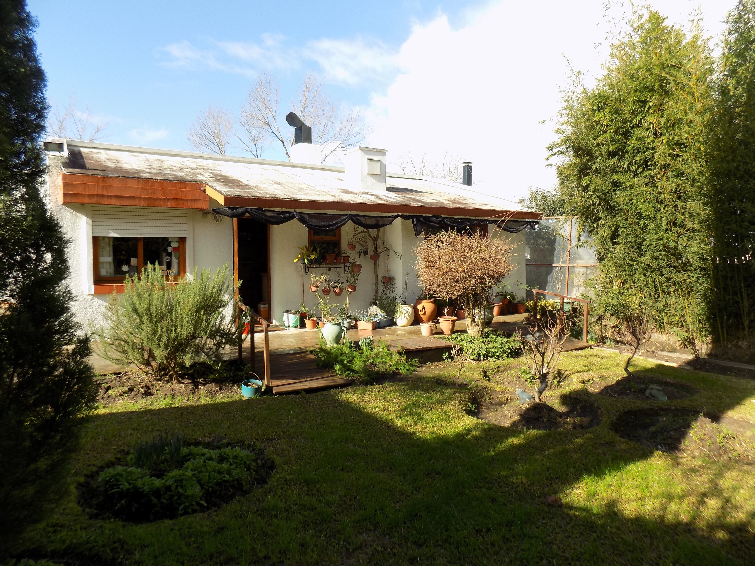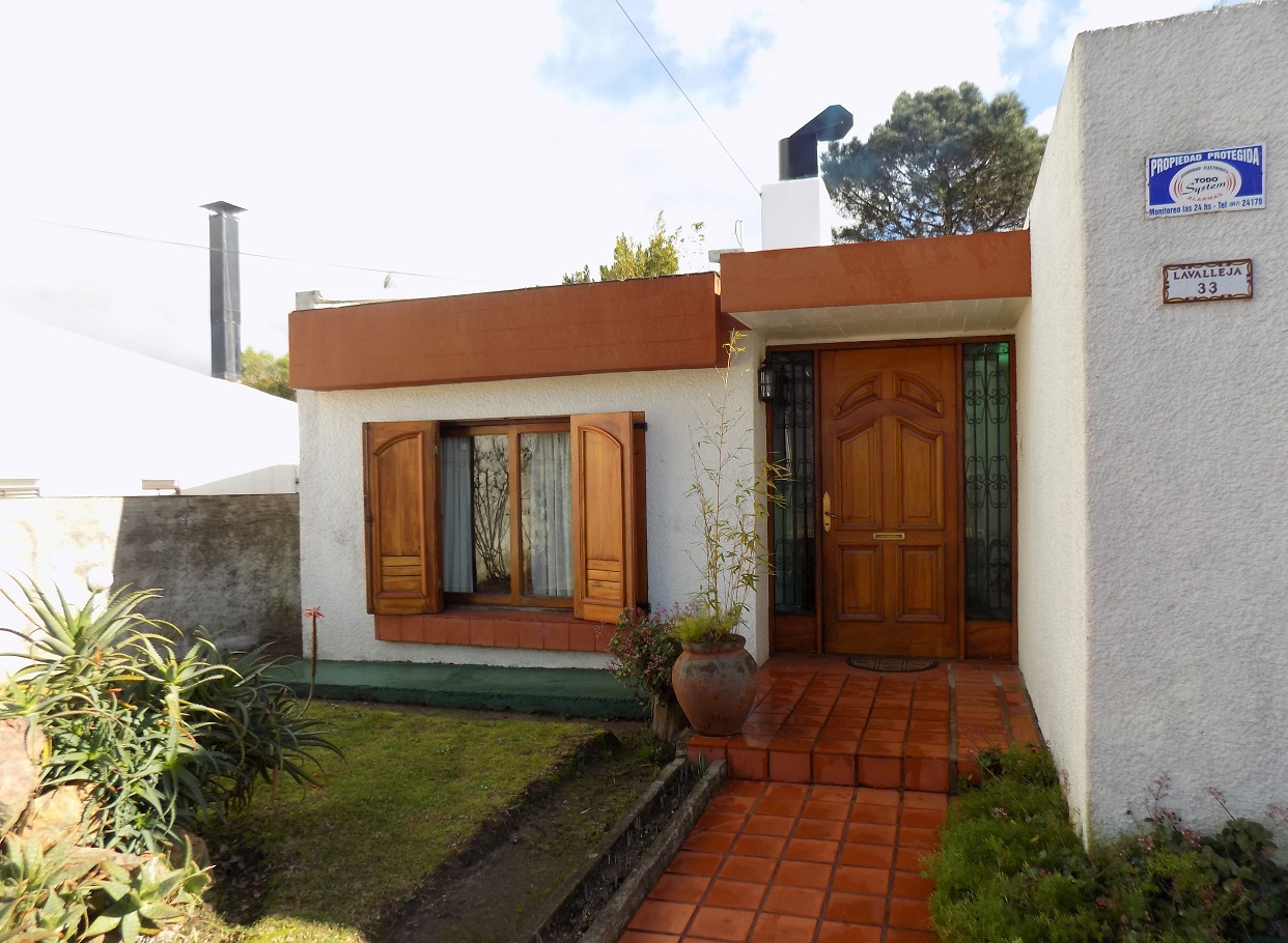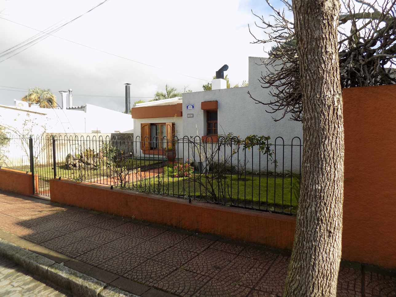 Muy buena oportunidad de inversión, en zona céntrica de la ciudad. La propiedad se encuentra en excelente estado de conservación, posee hermoso y amplio jardín al frente y al fondo con variedad de plantas. Luminosa, de cómoda distribución, cuenta con 2 dormitorios y 1 baño completo y otro dormitorio con recibidor y grandes placares, en suite, también con baño completo y jacuzzi. Living- Comedor integrados en desnivel con estufa a leña, cocina bien iluminada y muy bien equipada. Aberturas de madera de muy buena calidad y terminación. Tiene garage al fondo de la propiedad con una habitación en planta alta para usos múltiples, que se puede acceder tanto desde el interior como por escalera exterior. Cuenta con saneamiento.